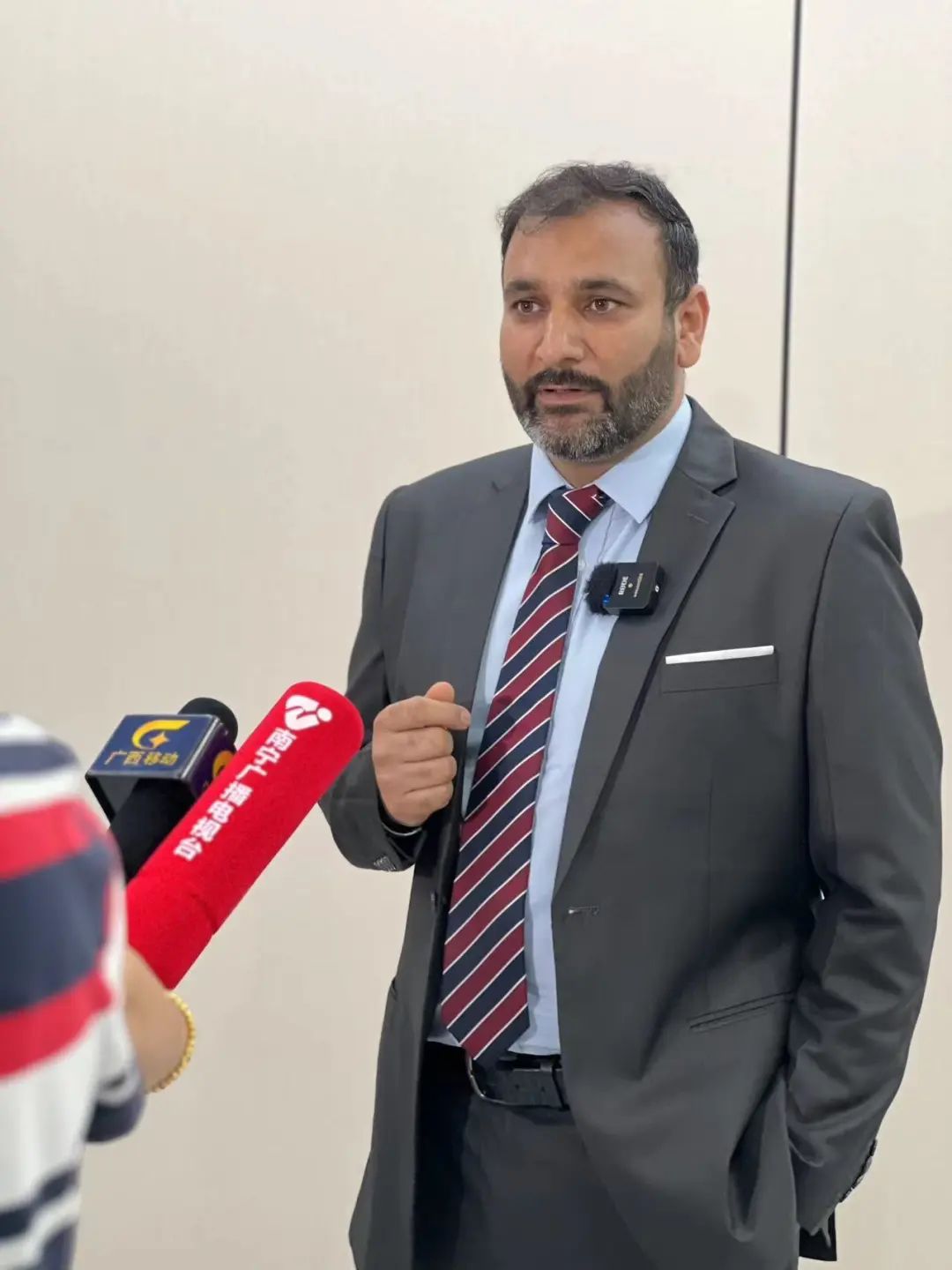 为支持乐鱼网页版,乐鱼(中国)官方在线登录水牛奶产业发展工作,巴基斯坦驻广州总领事馆商务参赞穆罕默德先生受邀莅临展位现场并接受了现场媒体的采访,穆罕默德先生表示,乐鱼网页版,乐鱼(中国)官方在线登录是中国最大的水牛奶企业,公司的产业发展战略规划与巴基斯坦的水牛产业发展规划十分契合。中国有着巨大的水牛奶市场,奶源却得不到满足,他表示很可惜。基于中巴友好关系,巴基斯坦愿意与中国人民分享我们的黑色黄金尼里拉菲水牛,让更多的中国人能喝到美味又营养的水牛奶。现在,乐鱼网页版,乐鱼(中国)官方在线登录的团队在巴基斯坦用胚胎技术与巴基斯坦科学家一起繁殖精英水牛,这对企业、对产业和对两国人民都是好事,相信乐鱼网页版,乐鱼(中国)官方在线登录水牛引种项目会成为中巴农业合作的示范工程。穆罕默德先生对未来双方的深入合作表示期待,也祝乐鱼网页版,乐鱼(中国)官方在线登录本次展会能圆满成功,让更多人民认识水牛奶、了解水牛奶、享受水牛奶!