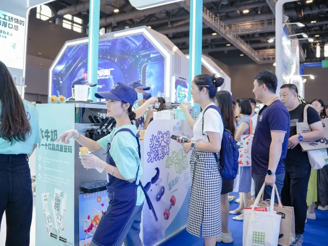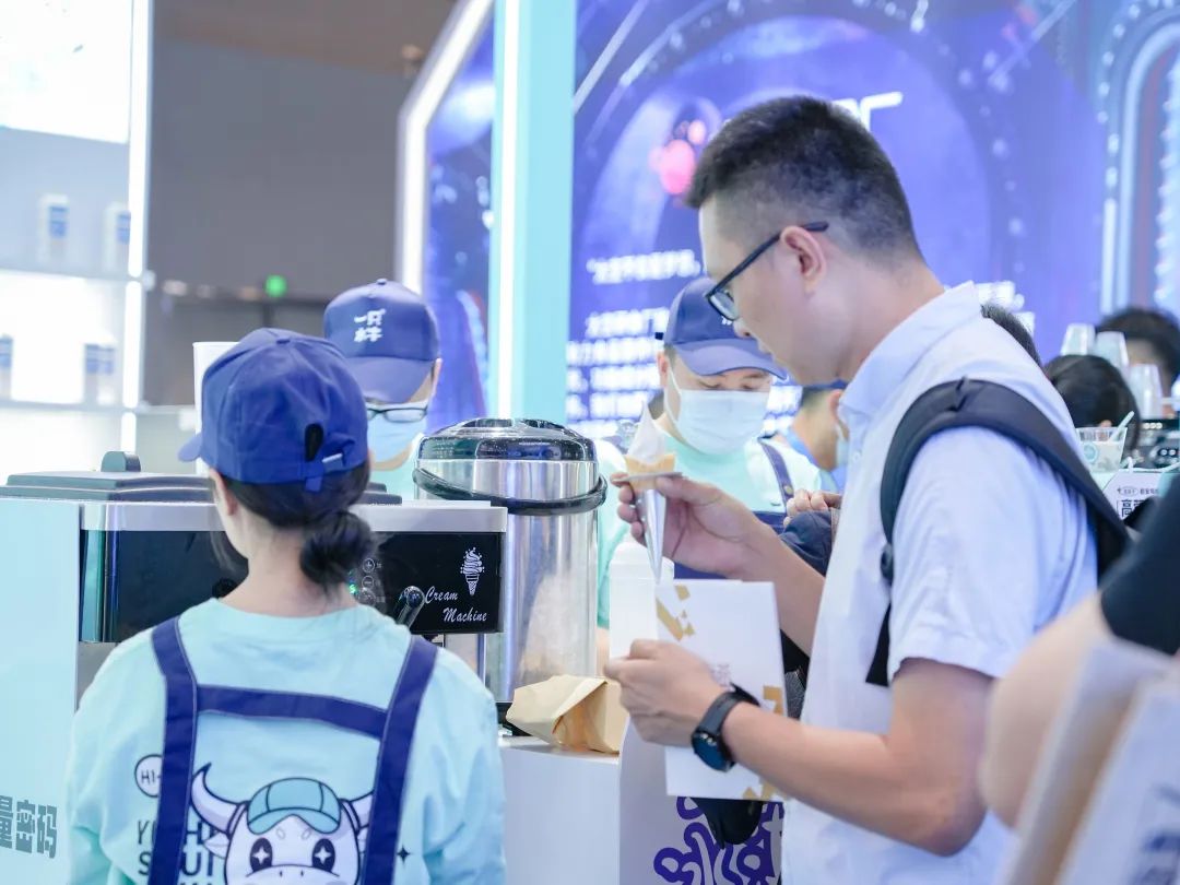 现场用水牛奶调制的拿铁、奶茶、冰淇淋,征服了一波又一波来访者的味蕾,让展位始终保持着人声鼎沸的火热态势。现场人流涌动,来自全国各地的众多参展商、经销商和消费者接踵而至,聚焦于皇氏水牛奶,并一一详细品鉴、咨询,赞不绝口。