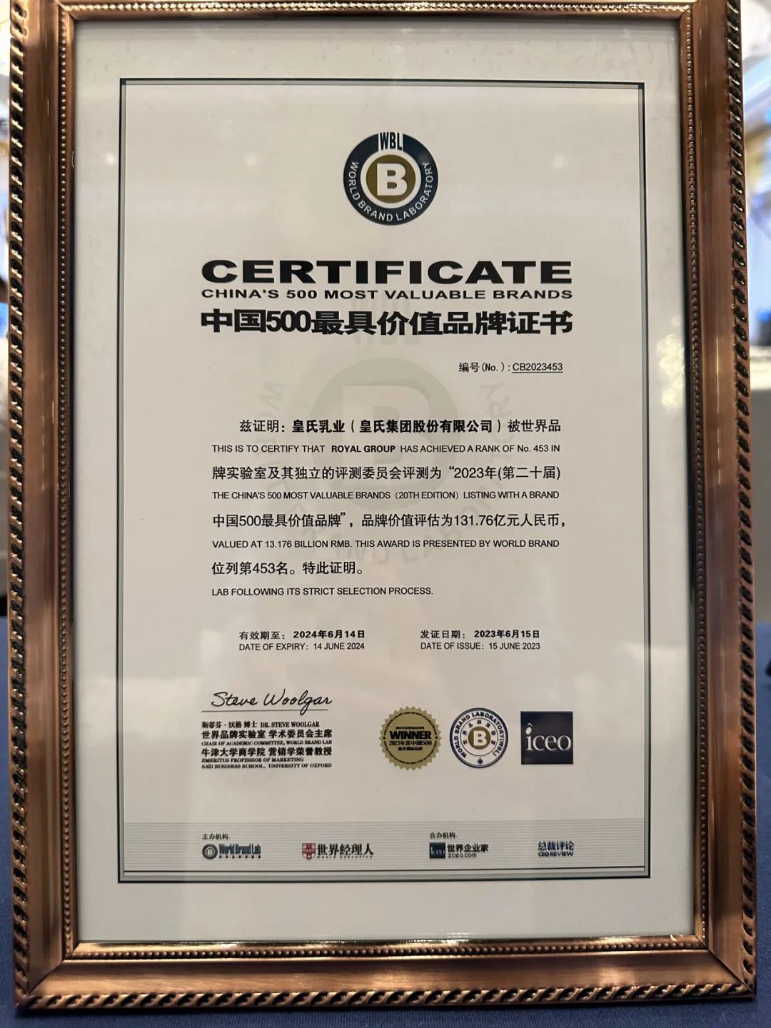 此次荣登“中国500最具价值品牌”榜单,不仅反映了公众对“皇氏乳业”品牌实力、产品品质、服务质量等多方面给予的高度认可,也是企业在发展过程中牢筑质量根基、不断变革创新,致力提升自主品牌影响力和竞争力所取得的成果。