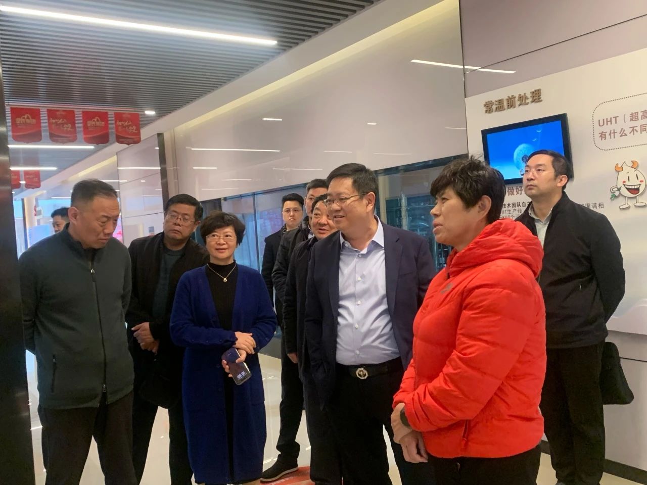 调研组领导一行通过观看企业宣传片了解公司发展概况,实地参观皇氏中央工厂智能化生产车间,对皇氏不断创新升级的数智成果、产品品质、奶源建设等方面取得的成绩给予充分肯定,同时通过黄董的详细介绍,考察组也深入了解了乐鱼网页版,乐鱼(中国)官方在线登录在发展光伏产业、带动农、牧光互补、推动节能减排等方面工作的主要做法和成效。