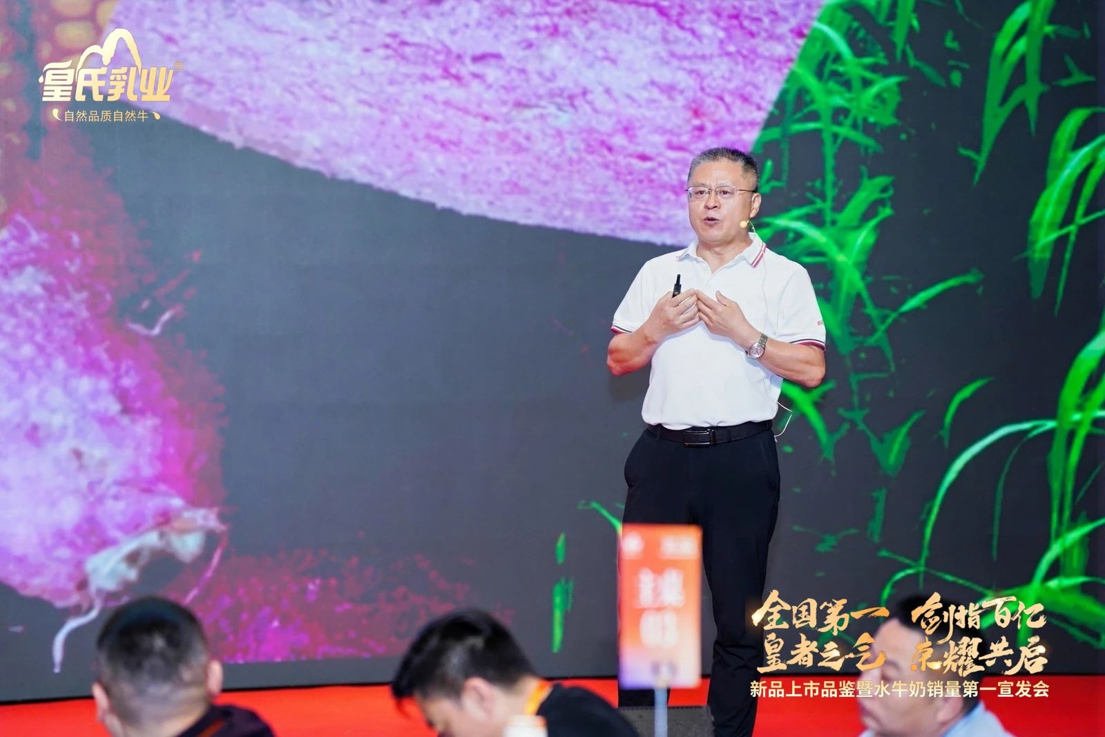 会议伊始,乐鱼网页版,乐鱼(中国)官方在线登录董事长黄嘉棣做欢迎致辞。黄董首先对广大经销商朋友们的到来表示热烈欢迎和衷心感谢,随后从市场竞争、种源战略和品牌出海等方面阐述了在当前严峻经济形势下,公司百亿乳企战略目标面临的挑战和付出的努力。黄董表示,在各大液态奶品牌营收纷纷同比下降的行业小环境中,皇氏乳业连续几年夺得中国液奶20强中的增长冠军的成绩离不开各位皇氏家人和广大经销商伙伴的共同努力,并表示未来皇氏家人和伙伴们将继续团结一心、携手同行,深化合作、互利共赢!