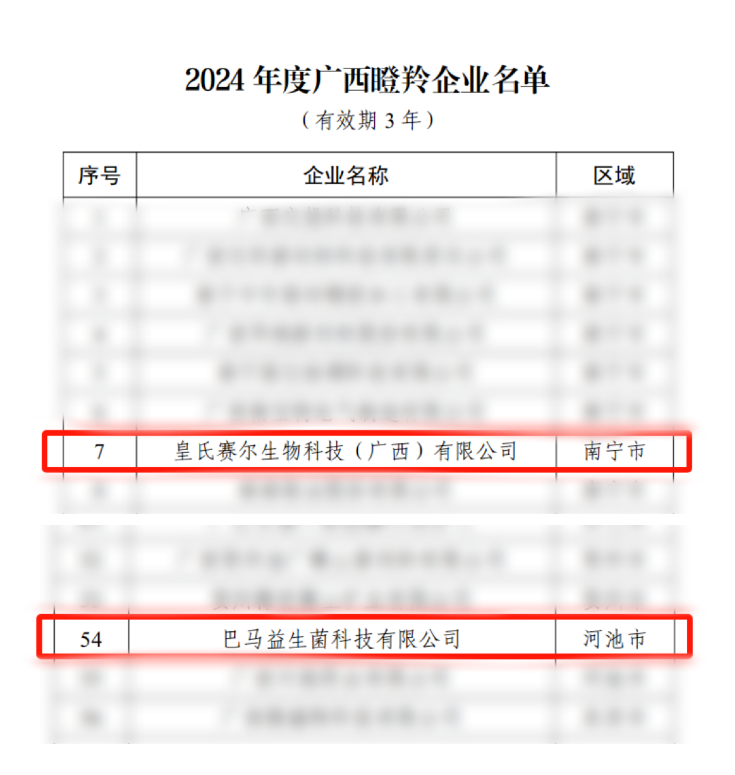 此外,乐鱼网页版,乐鱼(中国)官方在线登录旗下皇氏赛尔生物科技(广西)有限公司(以下简称“皇氏赛尔”)、巴马益生菌科技有限公司(以下简称“巴马益生菌”)凭借在专业创新、研发投入、成果转化及市场影响力等方面的突出表现,通过“2024年度广西瞪羚企业”认定、创新型中小企业认定、南宁市农业产业化龙头企业认定等,充分体现了上级部门对皇氏创新实力与发展前景的高度认可和期望。
