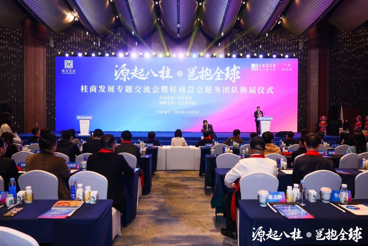 为提振桂商发展信心,深化政企合作,共促广西高质量发展,2024年12月29日,“源起八桂,邕抱全球”桂商发展专题交流会暨桂商总会服务团队换届仪式在广西南宁隆重召开。