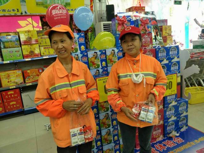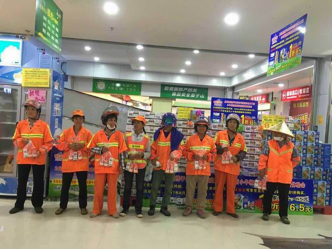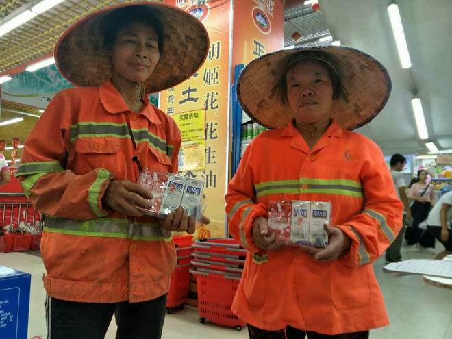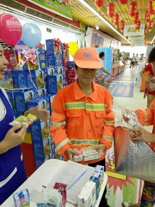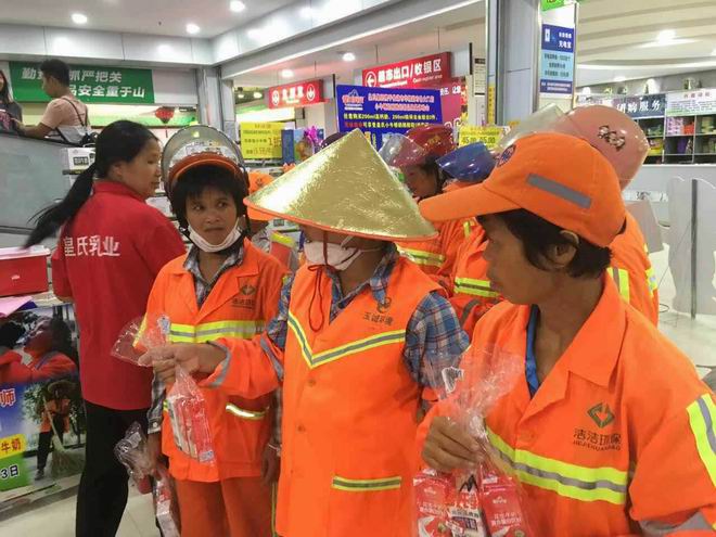 给予贵港全城环卫工人免费领取皇氏牛奶