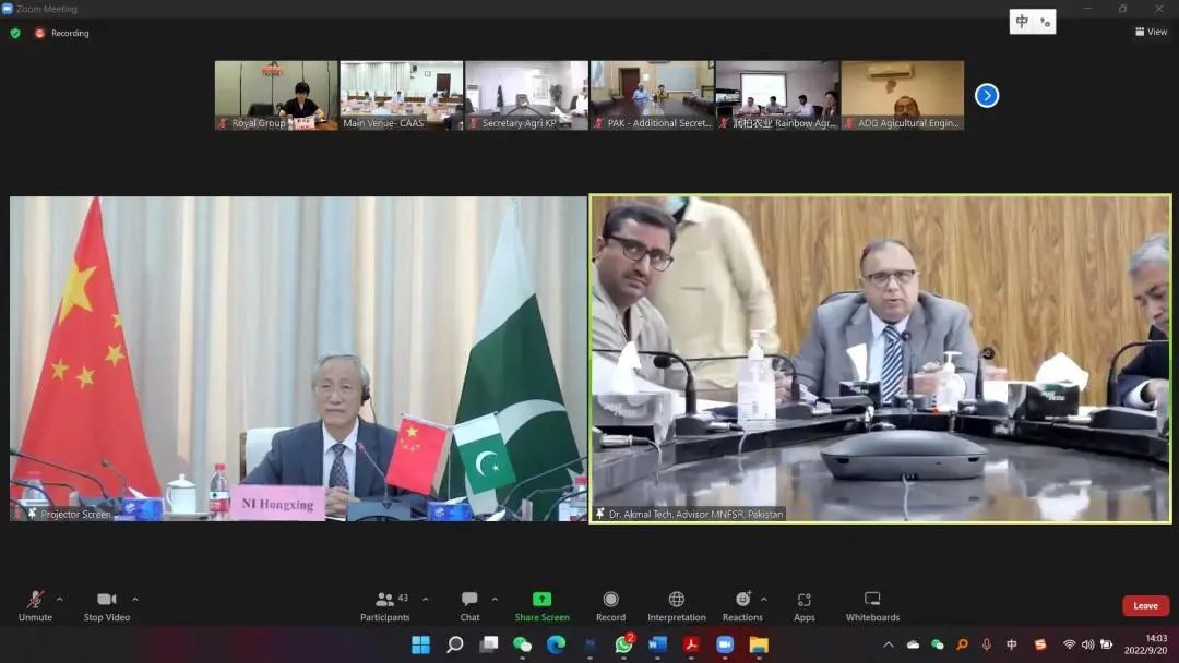 2022年9月20日,中国农业农村部与巴基斯坦国家粮食安全与研究部以视频方式共同召开中巴农业联合工作组第三次会议。此次会议双方为进一步发挥中巴经济走廊联合合作委员功能,强化在农业现代化等领域合作, 探讨如何进一步释放企业间和政府间农业合作潜力展开了讨论。